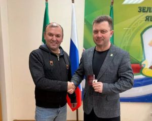 Татарстан Республикасы Зеленодольск муниципаль районы башлыгы киңәшчесе Евгений Михайлович Потаповка ГТО күкрәк билгесе тапшырылды.