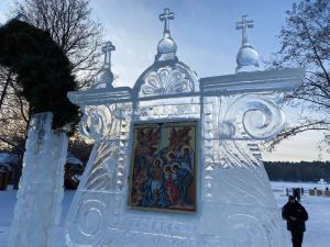 Мастерлар боз өстендә чын әкият тудырганнар: нәфис боз скульптуралары, яктырткычлар һәм бәйрәм аркалары тантана башлануны көтә.