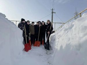 «Әйшә гимназиясе Җиңү волонтёрлары» Заовражная урамында яшәүче Клавдия Ефимовна Майоровага ярдәм кулы сузды – ихатадагы карны чистарттылар, юлны ачтылар.