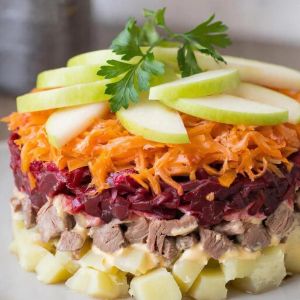Салат катламлап ясала.